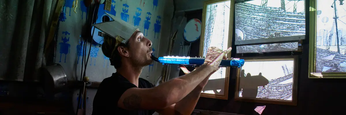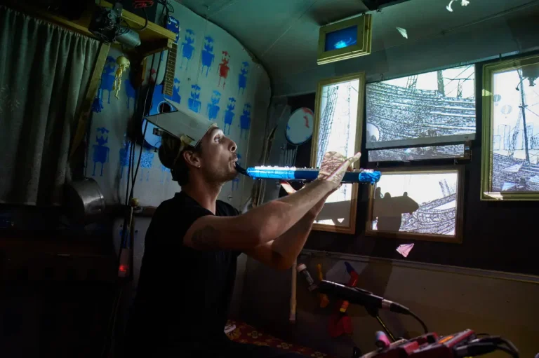 Avion Papier est un spectacle en caravane à la croisée des arts numériques, de la musique et du théâtre d’objets. Dans la petite caravane transformée en micro-cinéma, un musicien vous propose de suivre le voyage d’une femme à travers un film d’animation. En explorant des dispositifs mécaniques singuliers et en jonglant avec divers instruments ou objets sonores improbables, il fabrique la musique du film devant vous et vous plonge dans une étonnante aventure onirique de laquelle vous ne ressortirez pas indemne. Il paraîtrait que les personnages s’échappent même de l’écran pour étendre le champ de votre imagination…