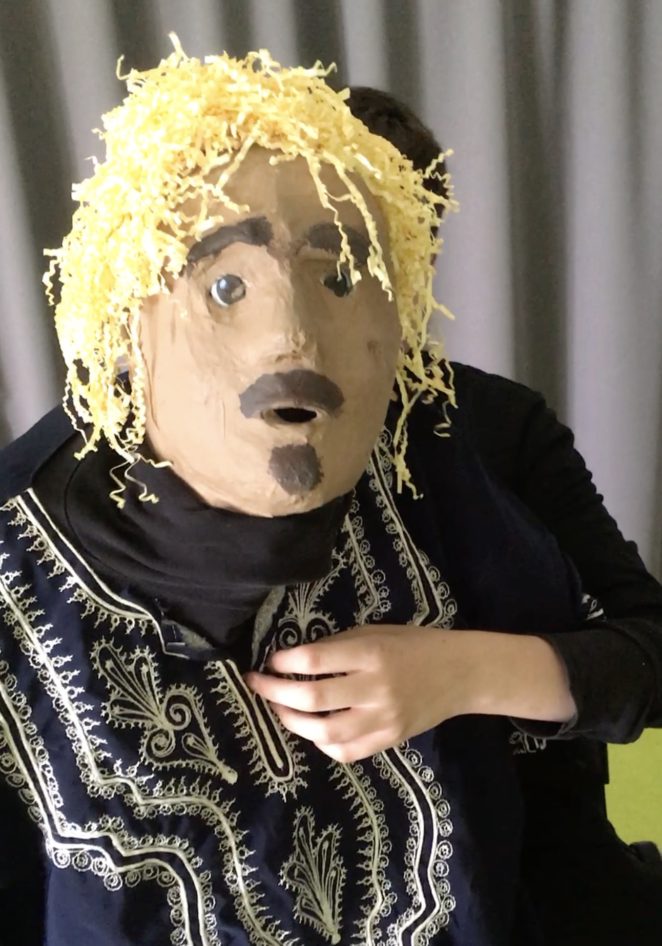 Les élèves travaillent à partir de leur propre visage pour créer leur personnage. À l’aide de bandes de plâtre, en binôme, les élèves moulent leur visage en faisant attention à la solidité de la structure et à l’expression rendue. Il est également possible de travailler à partir d’une matrice pour réaliser un visage selon son souhait.
