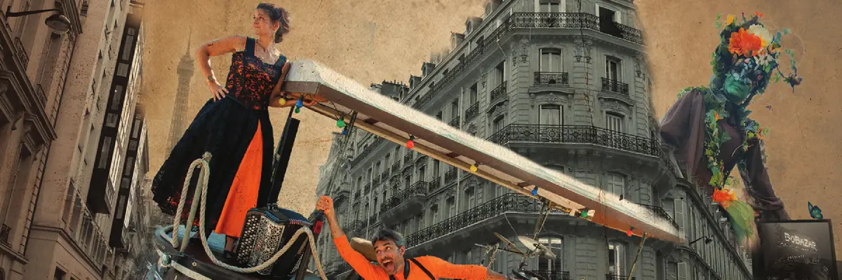 La compagnie Bobazar a été créée en 2022 du côté des Sables d’Olonne (Vendée). Elle naît de la rencontre de musiciens, échassière, metteuse en scène et techniciens autour de Peggy une accordéoniste. La diversité musicale, la proximité avec le public, l’humour, la poésie, l’énergie et l’originalité font partie de l’ADN de la Compagnie. C’est une envie forte de faire simple et exigeant, populaire et sophistiqué, fédérateur et surprenant. La Compagnie sillonne les routes de France toute l’année pour partager humainement et musicalement.