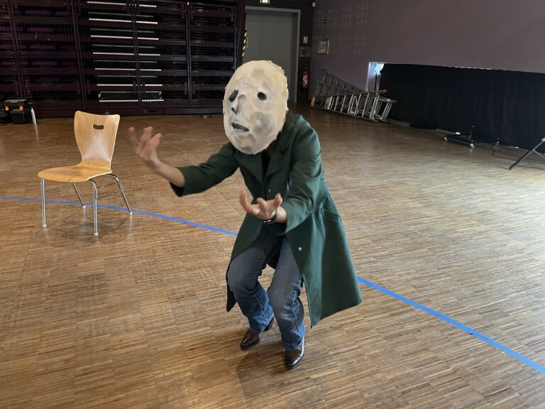 En mars 2024, les jeunes de l’IME Les Boucholeurs assistent à un temps de performance de la compagnie Kiroul dans le cadre de leur résidence de création pour À la recherche. À l’issue de celui-ci, les jeunes échangent avec les artistes sur le propos et les métiers du spectacle.